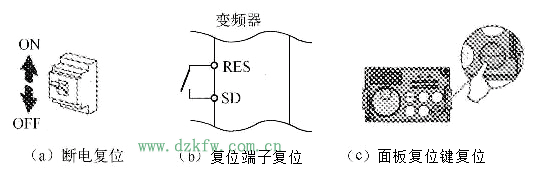 (3)使用操作面板的【STOP/RESET】鍵進(jìn)行復(fù)位,這種方法僅適用于重故障動(dòng)作后的復(fù)位,如圖 (c)所示。