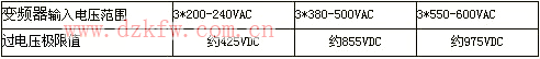 變頻器輸入電壓范圍與欠電壓極限值對照表