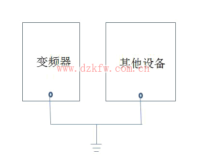 在接地時,應采用較粗的短導線將變頻器的接地端子(通常為E端)與地連接。當變頻器和多臺設備一起使用時,每臺設備都應分別接地,如下圖所示,不允許將一臺設備的接地端接到另一臺設備接地端再接地。