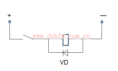 圖中線圈斷電后會產生很高的左負右正反峰電壓,二極管VD馬上導通而使反峰電壓降低,為了使能抑制反峰電壓,二極管正極應對應電源的負極。
