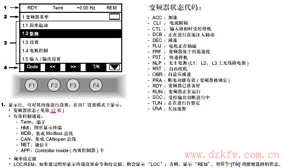 施耐德ATV61變頻器操作面板按鍵布置為:
