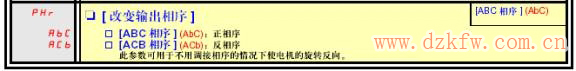 如果電機轉向不正確,可在“1.1簡單設置”菜單或“1.4電機控制”菜單中修改PHr參數。