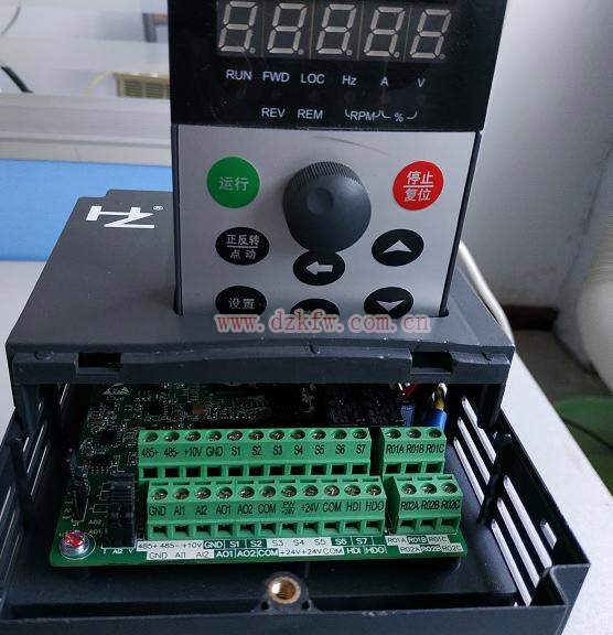 通電后,變頻器顯示屏會有顯示,不同變頻器通電后顯示內容所不同,應對照變頻器操作說明書觀察顯示內容是否正常。