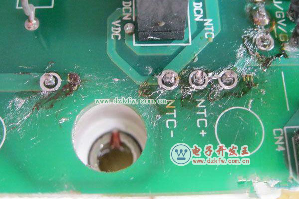 9、模塊體積很小,針腳密集,用熱風槍輪流吹焊各腳,直至每個腳的錫都融化,然后取下模塊。如英威騰1.5KW 2.2KW變頻器,此方法要注意掌握溫度和時間,以免烤焦板子。