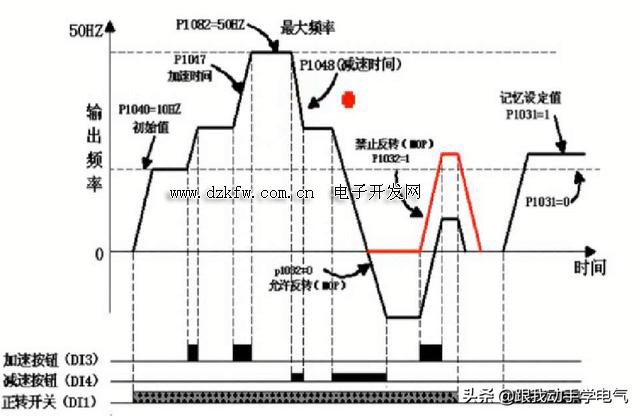1)主頻率源選定參數P1070,如上面所講的P1070(0)=1050;表示MOP增速/減速給定頻率方式。r1050(0)=MOP操作的實際輸出頻率