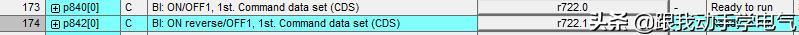 2)啟停命令源選定參數:P0840(0)啟停命令信號源,設置P0840=r722.0,表示DI1端子啟停,如設置P0842=r722.1,表示DI2端子反轉啟停。如下圖所示。