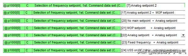 組合如下圖所示:在P1000(0)來選擇組合:十位上位輔頻率源,個(gè)位為主頻率源。