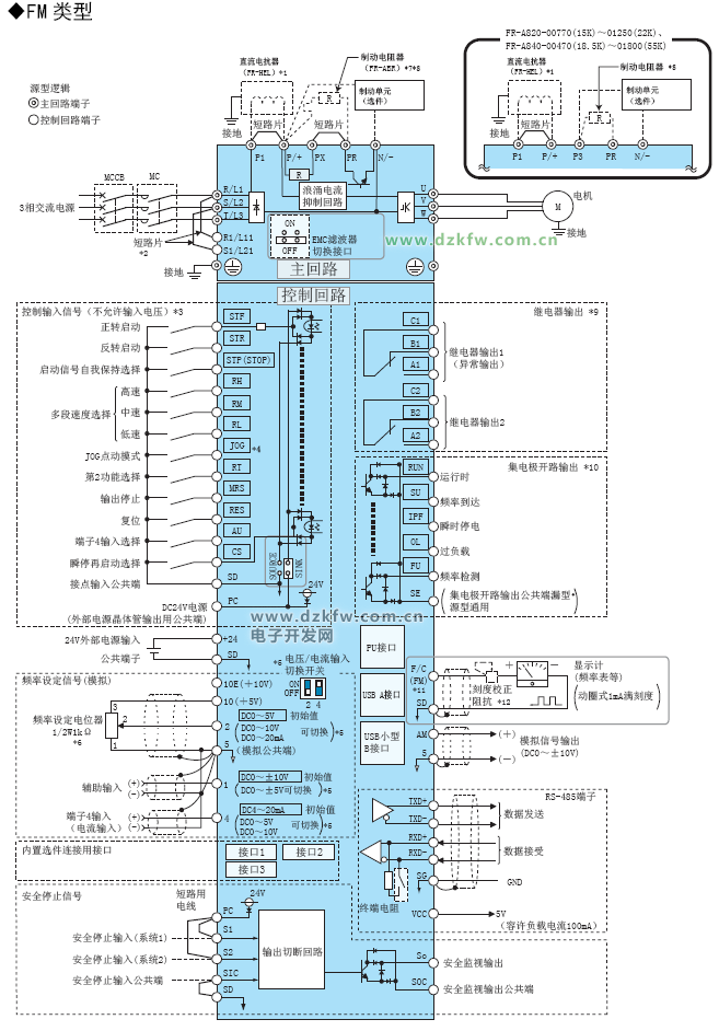 1、三菱變頻器FR-A800 FM類型端子接線圖