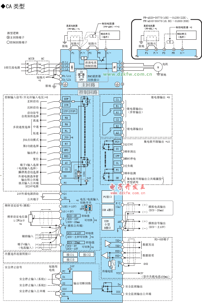2、三菱變頻器FR-A800 CA類型端子接線圖