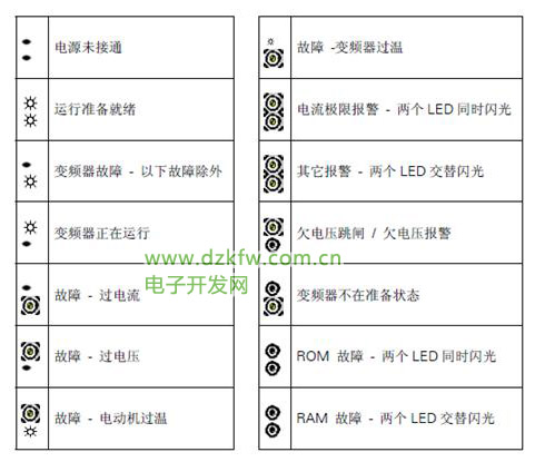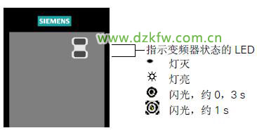西門子變頻器的上,下兩個ALM指示燈有四種狀態,分別是燈滅,長亮,快速閃爍,和閃爍,分別代下以下含義: