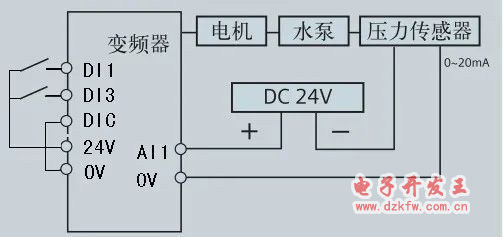 1、通過變頻器PID功能 控制,實現(xiàn)恒壓控制。