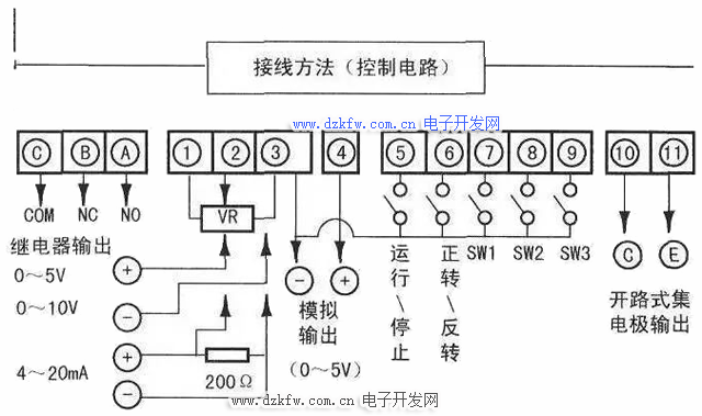 2、由于控制電路的頻率輸入信號是微小電流,所以在接點輸入的場合,為了防止接觸不良,微小信號接點應(yīng)使用兩個并聯(lián)的節(jié)點或使用雙生接點。