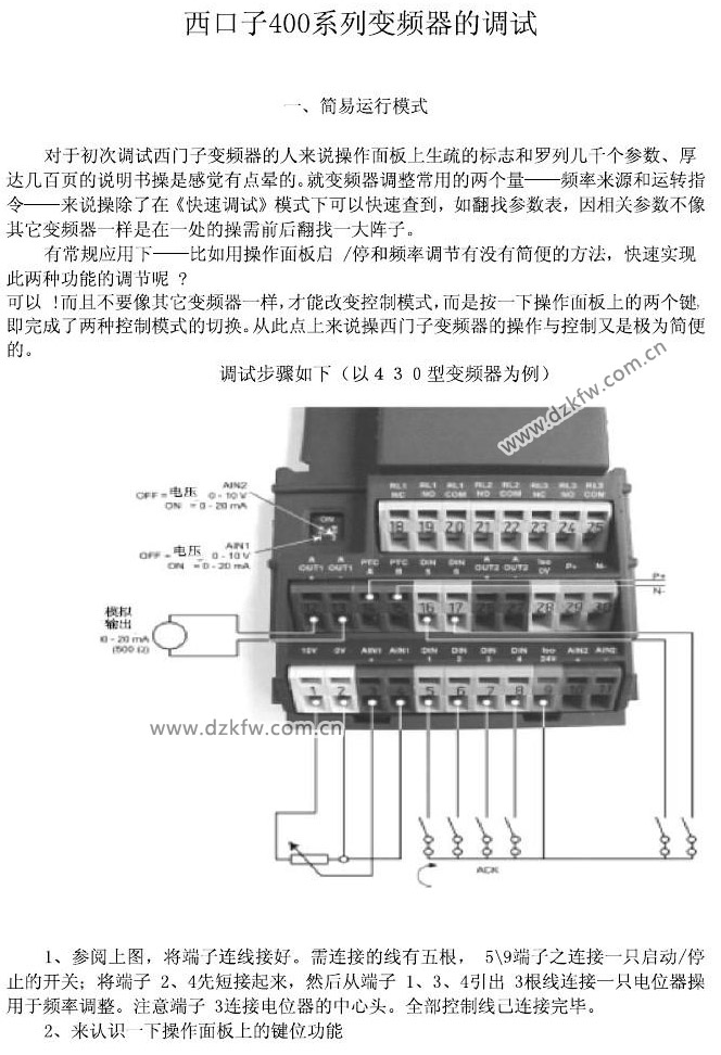 西門子400系列變頻器的調試方法 西門子變頻器面板設置方法