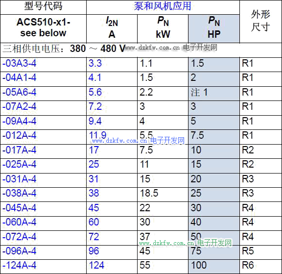 例如:7.5kw的風(fēng)機(jī)選型型號就是:ACS510-01-017A-4,其中017A為最大電流17A,實(shí)際電流參數(shù)按照電機(jī)名牌功率填寫。