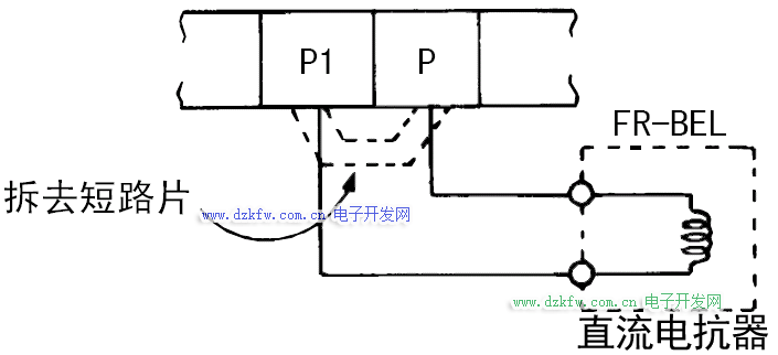先將P1、P端子間的短路片取下,然后用連接線將直流電抗器與P1、P端子連接。
