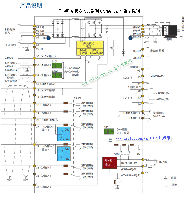 丹佛斯變頻器FC51系列0.37KW-22KW 端子說明