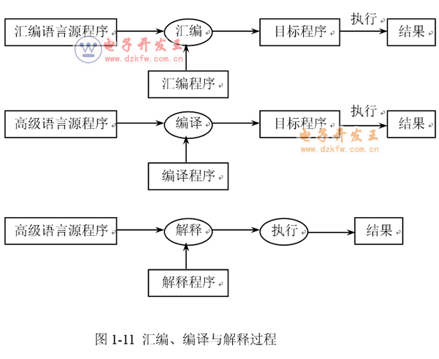 應(yīng)該注意的是,除機(jī)器語言外,每一種計算機(jī)語言都應(yīng)具備一種與之對應(yīng)的語言處理程序。