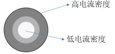 其中,J_0 是導(dǎo)體表面的電流密度。隨著 r 的增加,電流密度迅速衰減到零。因此,在高頻條件下,電流僅集中在導(dǎo)體的表層,形成了表面電流。