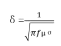 它表示的是電流密度作為頻率f、磁導(dǎo)率µ和電導(dǎo)率σ的函數(shù)在空間的衰弱。