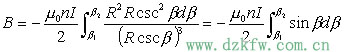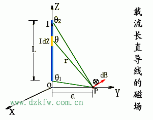解:建立如圖坐標系,在載流直導線上,任取一電流元Idz,由畢-薩定律得元電流在P點產(chǎn)生的磁感應強度大小為: 討論:(1)無限長直通電導線的磁場: (2)半無限長直通電導線的磁場: (3)其他例子 |