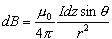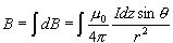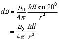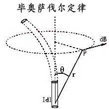 | 1.畢奧-薩伐爾定律:載流導線產(chǎn)生磁場的基本規(guī)律。微分形式為: 整個閉合回路產(chǎn)生的磁場是各電流元所產(chǎn)生的元磁場dB的疊加。 |