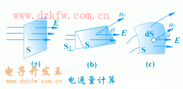 電通量:在講述靜電場的高斯定理之前,我們將借助于電場線的概念,引入電通量這個物理量。在電場中任一點處,取一塊面積元