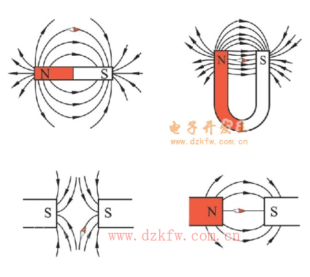 磁感線是閉合曲線。規定小磁針的北極所指的方向為磁感線的方向。磁鐵周圍的磁感線都是從N極出來進入S極,在磁體內部磁感線從S極到N極。
