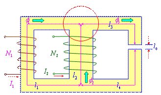 即匯合于磁路中任一節點的磁通的代數和為零,這就是磁路的基爾霍夫第一定律。