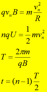 式子中為何將n減一需要思考一下,P點正好在加速電場的邊緣,稍微推導一下,假如經過兩次加速就剛好到了P點,那不就是在磁場中偏轉的半圈嗎?