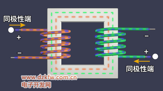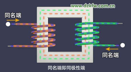 所謂同名端,可以這樣理解:當兩個線圈都通電流,它們所產生的磁場方向相同時,兩個線圈的電流流入端稱為同名端。而同極性端的含義在于,該兩個電流流入端的電壓極性相同,同為正極或同為負極。