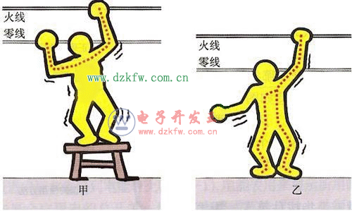 要避免這種情況,就要使腳與大地斷開連接。m.diks.com.cn 方法有很多種,比如踩在板凳上、穿上絕緣膠鞋等,總之,就是要在腳與大地之間用絕緣體隔開。當然,在此過程中,還要保證身體的其它部位不要和大地或墻面接觸。