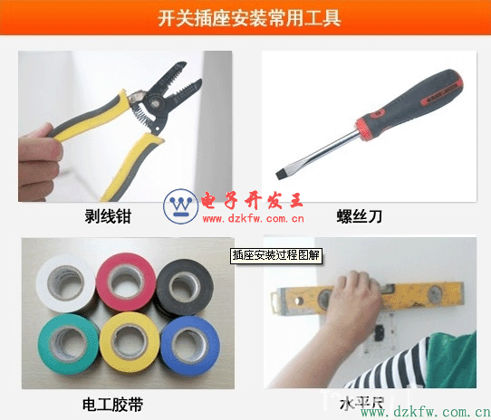 開關插座安裝工具:測量要用的卷尺(但水平尺也可以進行測量的),線墜,鉆孔時要用的電鉆和扎錐,手用絕緣手套和剝線鉗等。