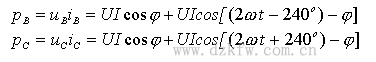 上式表明,對稱三相電路的瞬時功率是一個常量,其值等于平均功率,這是對稱三相電路的優點之一,反映在三相電動機上,就得到均衡的電磁力矩,避免了機械振動,這是單相電動機所不具有的。