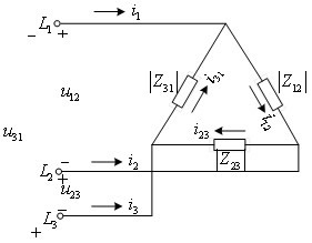 三相電路中接入負載后,電路中有相電流和線電流之分,每相負載中的電流