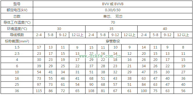 BVV、BVVB絕緣電線穿管暗敷時(shí)持續(xù)載流量