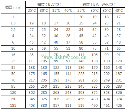 注2:BLV-105型鋁芯耐熱線的載流量可按表中的數(shù)據(jù)乘以0.78。