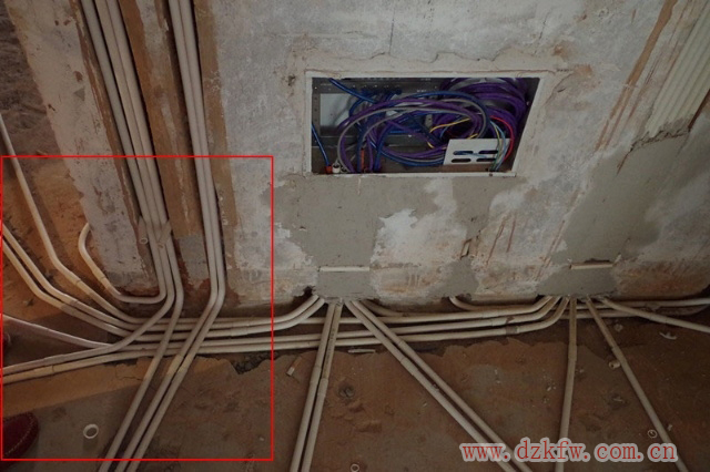 能整不斷:一線槽內不允許出現接頭,并且最多只能有3根電線(火地零),而且線管最好也是一根整管,不要有太多的接頭。因為后期我們的地面水泥砂漿找平乃至于以后的日常生活都有可能灑水到地面上,就會有通過接頭滲入線管內的風險。雖然這種風險很小,但是他確實存在。