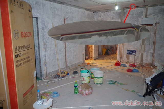 一般在線路匯聚的地方還有穿墻的時候會使用到軟管。因為我們家后期的石膏線為平貼素線,所以我個人的要求是在墻角的部分線要使用軟管,防止后期石膏線無法鋪貼,這也是逆向施工的好處。我們后期要實現的效果都已經想好了,那么前期施工就盡量為后面的設計讓步,防止造成不必要的困擾。