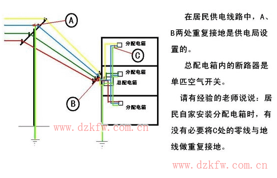 重復接地就是在中性點直接接地的系統(tǒng)中,在零干線的一處或多處用金屬導線連接接地裝置。在低壓三相四線制中性點直接接地線路中,施工單位在安裝時,應將配電線路的零干線和分支線的終端接地,零干線上每隔1千米做一次接地。對于距接地點超過50米的配電線路,接入用戶處的零線仍應重復接地,重復接地電阻應不大于10歐。零線重復接地能夠縮短故障持續(xù)時間, 降低零線上的壓降損耗,減輕相、零線反接的危險性。