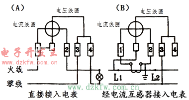 電表的接線形式很多,有單相電表的接法,也有三相電表的接法;有直接接線式,也有經(jīng)過電流互感器和電壓互感器接線的。但是總的來說,只有兩種回路:電壓回路和電流回路。電表接線的一般原則是:電流線圈與負(fù)載串聯(lián),或接在電流互感器的二次側(cè),電壓線圈與負(fù)載并聯(lián)或接在電壓互感器的二次側(cè)。