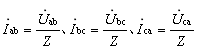 三相電源對稱,線電壓(即負載相電壓)對稱。