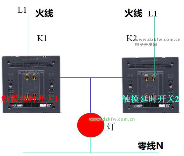 對于一些觸摸方式的開關,具體需要穿幾根線也是根據觸摸開關的型號和接線方式來決定的。我曾經用過一根相線觸摸延時開關,它的觸摸感應面板是采用電容感應技術來實現的開和關控制,其接線示意圖如下圖所示,這種類型的接線開關一般也需要預埋五根線。