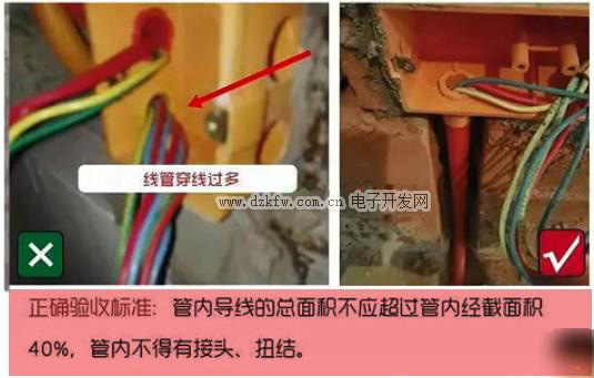 在把電線(xiàn)穿入線(xiàn)管內(nèi)時(shí),要避免穿太多的電線(xiàn),截面面積不得超過(guò)線(xiàn)管截面的40%。并且保證線(xiàn)管內(nèi)的電線(xiàn)通順。
