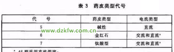 d)第四部分為最后一位數字,表示藥皮類型和電流類型,見表3.