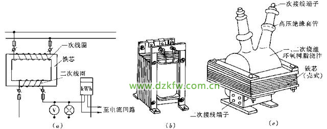 電壓互感器 (a)原理電路;(b)0.5kV;(c)10kV