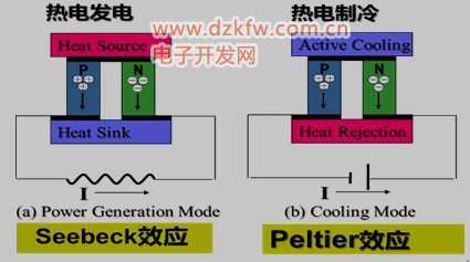 賽貝克效應的原理可以簡單解釋為:在兩種金屬組成的回路中,如果兩個接觸點的溫度不同,則在回路中將出現電流,稱為熱電流。同時在該電勢差作用下產生一個反向電荷流,當熱運動的電荷流與內部電場達到動態平衡時,半導體兩端形成穩定的溫差電動勢。