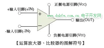 比較器(Voltage Comparator)的引腳結構與運算放大器相同,即由+輸入引腳、-輸入引腳、正側電源引腳、負側電源引腳、輸出引腳等5個引腳構成。該電路使用任一輸入引腳為基準引腳來固定電壓,放大該基準電壓與輸入另一個引腳的電壓間的差,輸出High或Low。