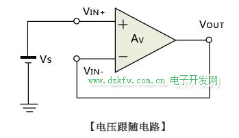 當運算放大器的開放增益Av足夠大時,可視為左邊近似于0、Vs=VOUT。