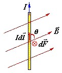 上式稱為安培定律。根據力的疊加原理,磁場對一段載流導線的安培力為![]()
