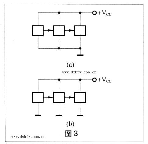 電路圖中通常將電源引線安排在元器件的上方,將地線安排在元器件的下方,如圖3(a)所示。有的電路圖中不將所有地線連在一起,而代之以一個個孤立的接地符號,如圖3(b)所示,應理解為所有地線符號是連接在一起的。